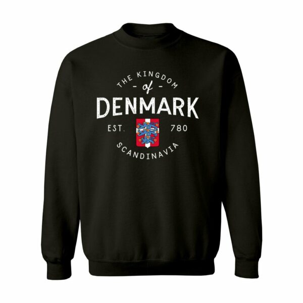 A cozy unisex sweatshirt with a stylish crest of the Kingdom of Denmark printed on it.