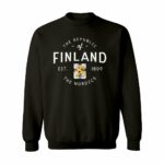 A cozy unisex sweatshirt with a stylish crest of the Republic of Finland printed on it.