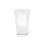 A 16oz custom-printed pint glass with a Viking longship flying a Valknut sail. These long and transparent glasses are highly versatile, can make for a great housewarming gift, and are bound to be used in any household.