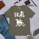 Whether you have Scandinavian heritage or just a history buff, our Skål t-shirt will hit the spot. Raise your horn and cheers to the Vikings, skål!