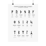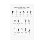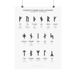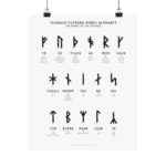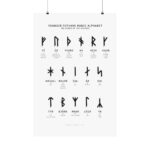 This print features all 21 Younger Futhark Runes — the runes used by the Scandinavian Vikings during the Viking Age — displayed in the traditional three rows, also known as “ætts.” Each rune is showcased with its corresponding name and the meaning of the name.